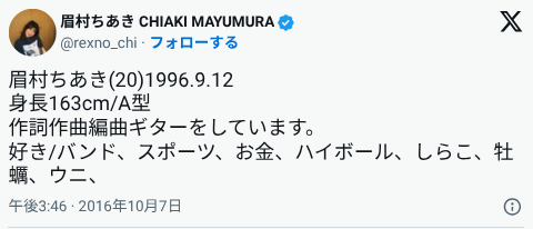 • 名前:眉村ちあき(まゆむら ちあき)